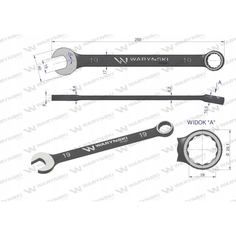 Klucz płasko-oczkowy 19 mm. CrV. DIN 3113. WaryńskiIndeks : WMK029 | |