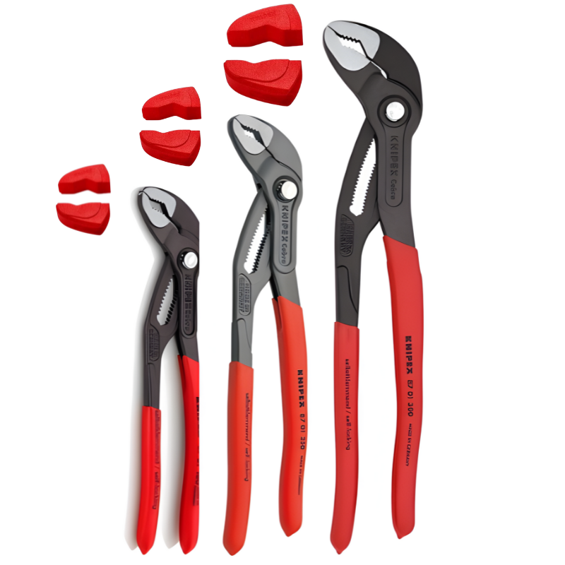 Największy zestaw KNIPEX Cobra® – szczypce do rur, 3 szt. + nakładki ochronne