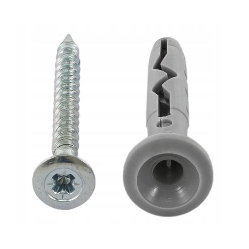 Kołek rozporowy - z szerokim kołnierzem typu grzybek, do zamocowań w materiałach typu beton, cegła, kamień. Wgłębienie krzyżowe pozwala na łatwy i szybki demontaż połączenia. Montaż odbywa się przez element mocowany (przelotowo). Zastosowanie: Zalecany do montażu elementów stalowych., do montażu profili przyściennych w konstrukcjach sufitów i ścian gk, rekomendowane do seryjnego montażu, do montażu listew przypodłogowych. Zastosowanie do podłoża: beton, beton komórkowy, cegła ceramiczna pełna, cegła silikatowa pełna. Parametry
