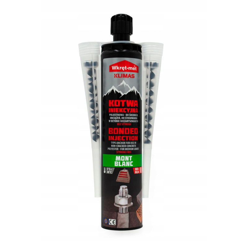 HM kotwa kotwy chemiczna klej żywica MONT BLANCK + 2 x mieszacz BEZ STYRENU | |