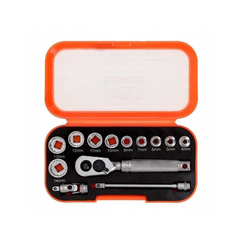 Zestaw nasadek dwunastokątnych z grzechotką 1/4", 13 szt. BAHCO [S13MC10.5]: | |