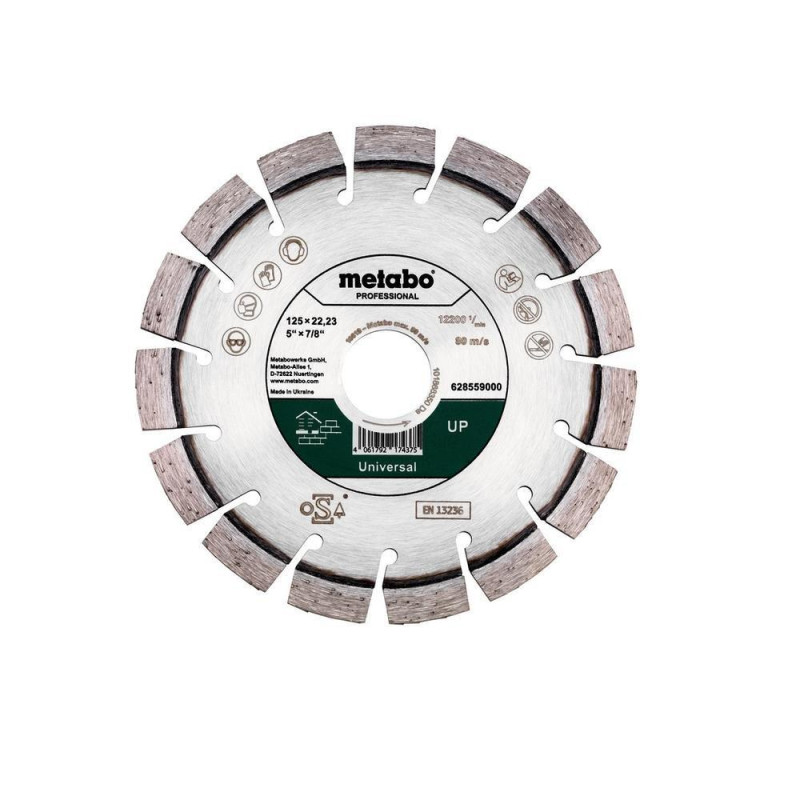 DIAMENTOWA TARCZA TNĄCA 125X22,23 MM, UP, UNIWERSALNA PROFESSIONALMETABO 628559000 | |