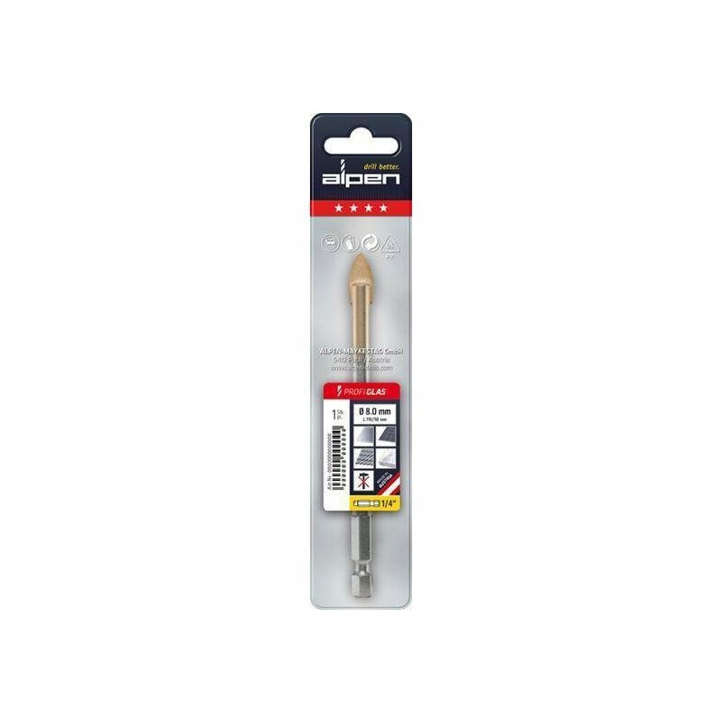 Wiertło do szkła porcelany ceramiki z chwytem 1/4 10x130mm ALPEN PROFI GLAS |
