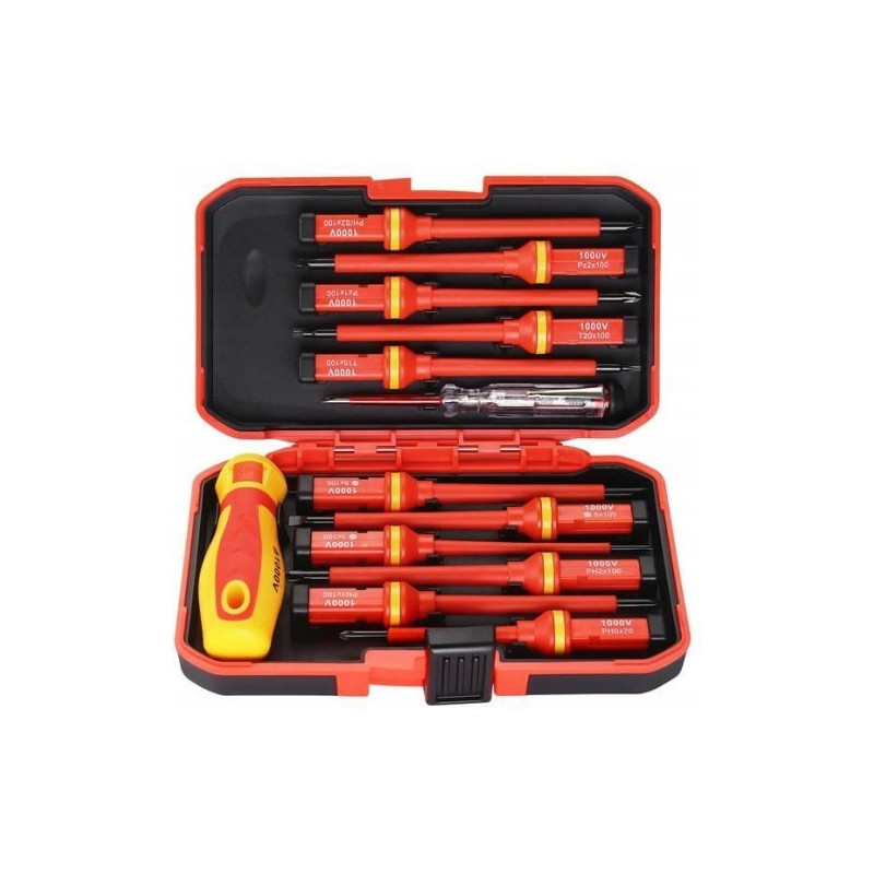 ?Skład produktu:? Zestaw 14 śrubokrętów izolowanych (różne rozmiary i typy) ? Etui do przechowywania ? Instrukcja użytkowania |