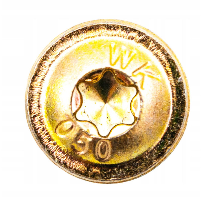 - Łeb podkładowy z gniazdem torx: Zwiększa powierzchnię docisku zapewniając wysoką wytrzymałość na przeciąganie oraz zamyka połączenie. Gniazdo TORX gwarantuje optymalne przeniesienie momentu obrotowego.
